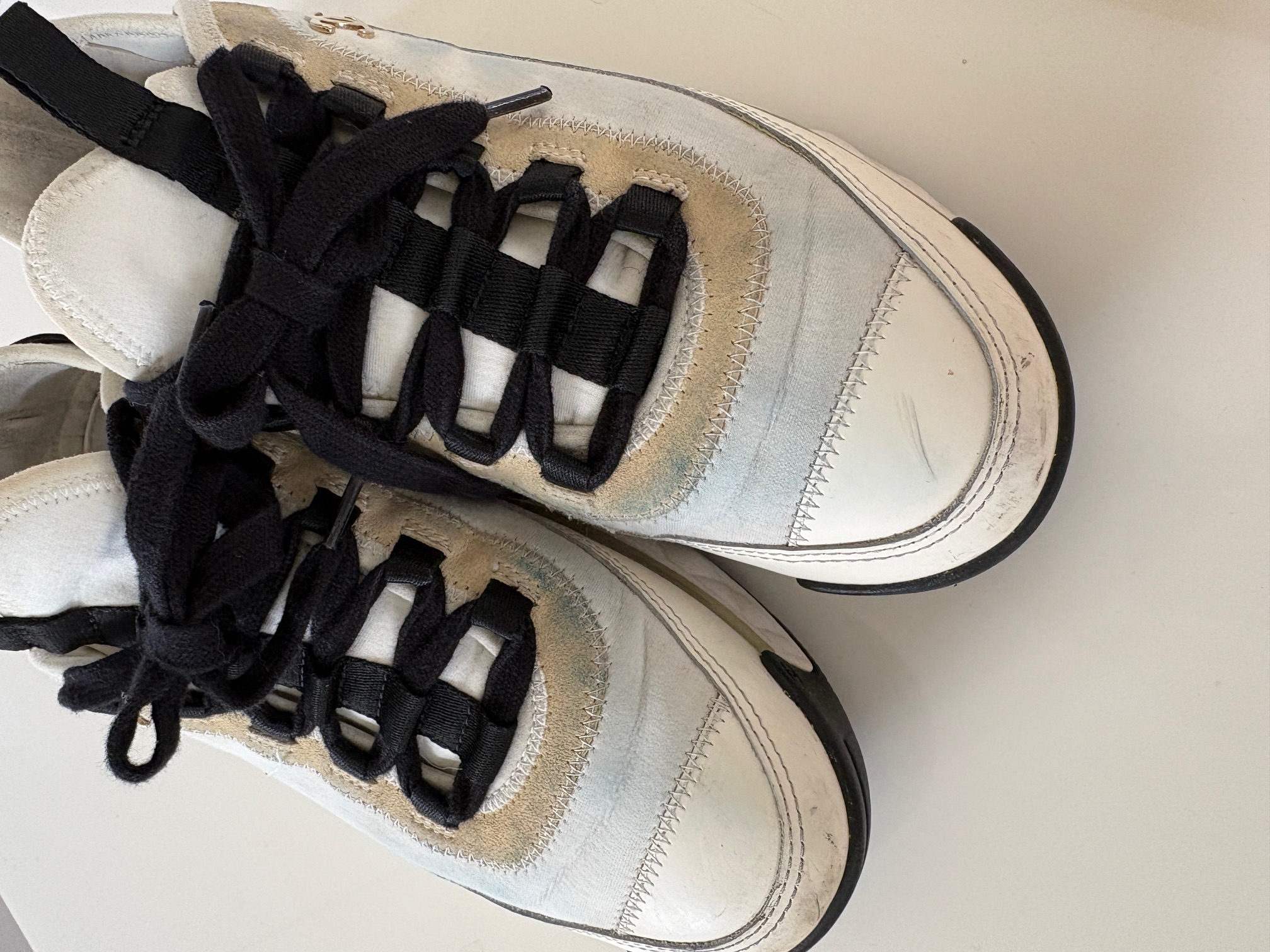 シャネルのスニーカー、靴の汚れ取りシートで汚れを拭き取ろうとしたら、青っぽくなったとのことでした。
